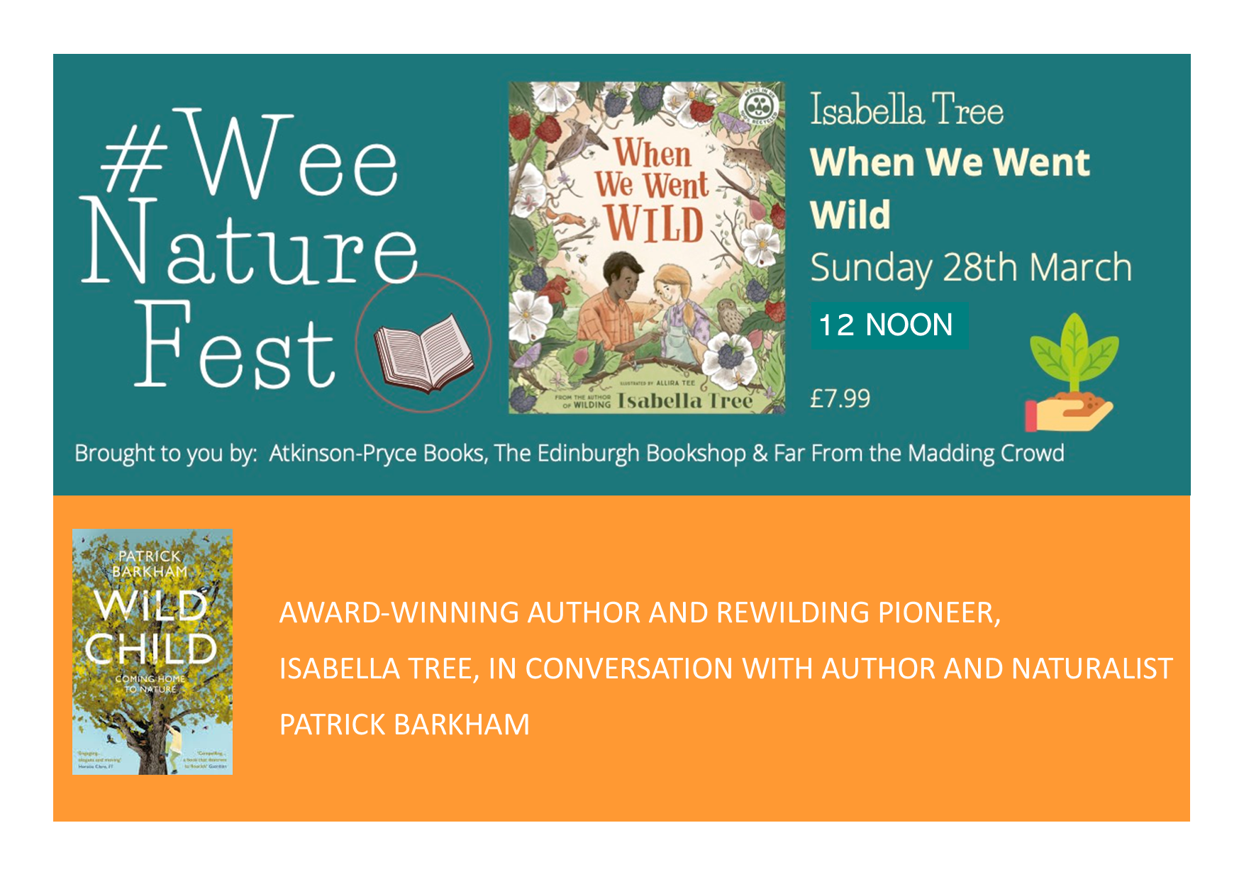 Kicking off the #WeeNatureFest, we are delighted to welcome Roger Morgan-Grenville to discuss how a chance meeting in a pub led to a quest involving bees and the pursuit of midlife honey! Roger was a member of the Royal Green Jackets for nine years, was a founding member of Help for Heroes and has written several books including Not Out of the Woods and Unlimited Overs. Liquid Gold is a heart-warming, and very funny, exploration of beekeeping and how it led to some profound changes in Roger's Life. Liquid Gold will be available at 10% discount for the duration of the festival. To register for this free event, please email: weethreeindies@gmail.com  Andrew Painting is involved in the largest rewilding project in Scotland at the Mar Lodge Estate in the Cairngorms. In the second of our #WeeNatureFest events, he'll be discussing the work being done there and the stunning new book, Regeneration: The Rescue of a Wild Land with author and naturalist Jim Crumley. Jim's book, The Nature of Spring, the third in his seasonal quartet, is now available in paperback. Both books will be available at 10% discount for the duration of the festival. To register for this free event, please email: weethreeindies@gmail.com  Join us for a craft and story session with emerging illustrator, Júlia Moscardó to celebrate the release of her stunning collaboration with Louise Greig, Home of the Wild. "A house is not a home for wild things; wild things need to run, and soar, and swim." This session is suitable for 4-8 year olds and they will need paper and colouring pens or pencils to join in with the craft! The event is happening on facebook live, so please just like the event on the Wee Three Indies facebook page and remember to tune in!  The festival continues with Cal Flyn's stunning exploration of places across the world that have been abandoned by humans, and how nature is recovering there. From empty neighbourhoods in Detroit to uninhabited islands Scottish islands, populated only by feral cattle, Islands of Abandonment is a timely and important book. Islands of Abandonment will be available with 10% discount for the duration of the festival. You can register for this free event simply by emailing: weethreeindies@gmail.com  Patrick Laurie's beautiful account of his life as a farmer in 'a vanishing land' was shortlisted for the Wainwright Prize in 2020. Native details his experiences of raising the Riggit Galloway, a rare breed of cattle that demands a very different rearing method than that offered by largescale industrial modern farming. This is an important book and we are very much looking forward to discussing it with Patrick as part of the #Wee Nature Fest! Native will be available with 10% discount for the duration of the festival. To register for this free event, please email: weethreeindies@gmail.com  Join best-selling author Lynne Rickards for a super-cute animal themed story session! Lynne will be reading Rowan the Red Squirrel and Willow the Wildcat, told in her signature rhyme,which highlight some of our very special Scottish creatures and their habitats. Both stories are suitable for ages 3-7. The event is happening on facebook live, so please just like the event on the Wee Three Indies facebook page and remember to tune in!  We can't really think of a better way to end a weekend of celebrating nature than with this very special event which brings award-winning author and rewilding pioneer Isabella Tree together with author and naturalist Patrick Barkham, to celebrate the launch of her first children's book, When We Went Wild. Patrick's latest book, Wild Child is also launching in paperback. Both books focus on the importance of children exploring the natural world around them, and we can't wait to hear them in conversation in a session aimed at families young and old, and then finding a tree to climb ourselves! Both books will be available at 10% for the duration of the festival. To register for this free event, please just email: weethreeindies@gmail.com